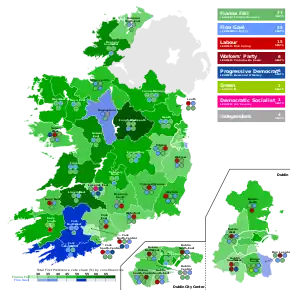 | Wicklow | 38,1 | 2 | 28,3 | 1 | 20,1 | 1 | 5,0 | - | 4,8 | - | - | - | - | - | - | - | 3,8 | - | 4 | 42 439 |