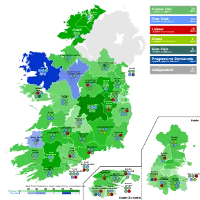Embora o Fine Gael ganhasse 20 lugares, com 41,6%, o Fianna Fáil continuou a ser o maior partido. A eleição foi considerada um sucesso para o Fianna Fáil, no entanto, a coligação do Fianna Fáil no 29.º Dáil, com os Democratas Progressistas, perdeu seis dos seus oito lugares[1].