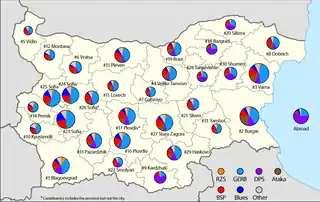 | Cidadãos pelo Desenvolvimento Europeu da Bulgária | 1 678 583 | 39,7% | Novo | 117 / 240 |