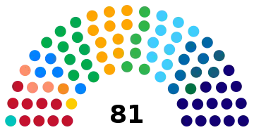 | Votos [1][16] | % de votos | Assentos[17] | % de assentos | +/– | Votos [18] | % de votos | Assentos eleitos | Assentos totais [2] | % de assentos | +/– | ||