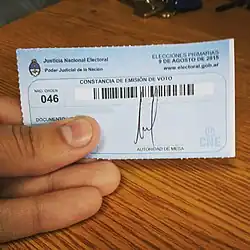 As eleições primárias, também denominadas PASO (Primárias, Abertas, Simultâneas e Obrigatórias) foram criadas em 2009, depois da aprovação da Lei N.º 26.571.[1][2] Nas eleições definem-se basicamente duas questões: quais partidos estarão habilitados a lançar candidaturas às eleições nacionais, que, segundo a lei são aqueles que obtenham ao menos o 1,5 % dos votos válidos na província em que concorrerão os candidatos. Também será definida a lista que representará cada partido ou coligação política.
