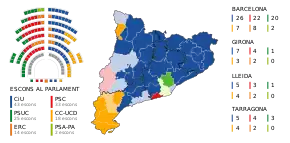 Os resultados deram a vitória à Convergência e União, liderada por Jordi Pujol, ao conquistar 27,8% dos votos e 43 deputados. Apesar desta vitória, Convergência e União, não tinha maioria no Parlamento da Catalunha.