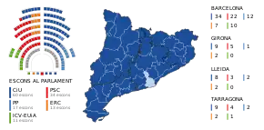 Os resultados das eleições deram a quinta vitória consecutiva à Convergência e União, liderada por Jordi Pujol, ao conquistar 41% dos votos. Apesar desta vitória, a CiU perdeu a maioria absoluta, que detinha desde 1984.[1]