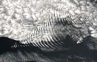 - Às vezes, uma nuvem de rotor é formada a favor do vento e abaixo do nível da crista. Tem a aparência do tipo de nuvem cumulus esfarrapada mas é causada por um vórtice horizontal turbulento, isto é, o ar é muito áspero.