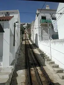 Via própria, cercada, de declive constante; cabo a descoberto sobre roldanas.[3]