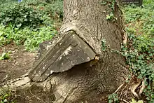 Placa sepulcral destruída por raízes