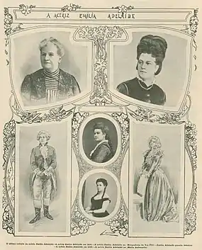 Foi a Coimbra representar, no Teatro Académico, Frei Caetano Brandão, drama em 5 atos de Silva Gaio, e ali recebeu o diploma de sócia honorária da academia. Em fevereiro de 1880, Emília Adelaide fez parte de uma companhia do ator Vicente Pontes de Oliveira em digressão pelo Brasil e foi muito aplaudida nos teatros das principais cidades por onde passou.[4]