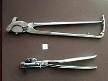 Dois emasculadores de diferentes tamanhos utilizados para diferentes tamanhos de animais.