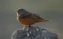 - BirdLife International (2019). Emberiza caesia. 2019. [S.l.: s.n.] p. e.T22720920A155518025. doi:10.2305/IUCN.UK.2017-1.RLTS.T22720920A155518025.en