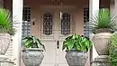 Detalhe com as iniciais E. B. na entrada de sua casa