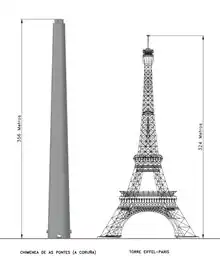 A chaminé tem um diâmetro na base de 36m e 18m na parte mais alta; com 356 metros (1207 pés) é actualmente a 19ª torre mais alta do mundo.