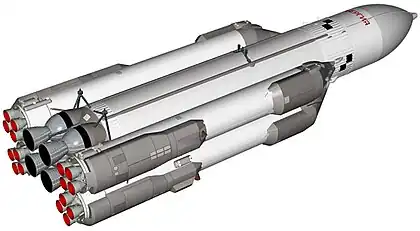 O foguete soviético Energia tinha maior força de propulsão, alcançando 46 MN de empuxo e podia levar 175 toneladas em órbita terrestre baixa (LEO) na sua configuração "Vulkan".