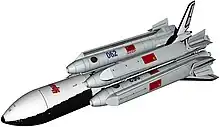 ![]() Energia transportando o Polyus (resposta soviética ao programa americano Guerra nas estrelas). |