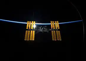 A tecnologia fotovoltaica, conquanto não é a única que se utiliza, segue predominando a princípios do século XXI nos satélites de órbita terrestre.[39] Por exemplo, as sondas Magellan, Mars Global Surveyor e Mars Observer, da NASA, usaram painéis fotovoltaicos, bem como o telescópio espacial Hubble, em órbita à volta da Terra.[40][41][42][43] A Estação Espacial Internacional, também em órbita terrestre, está dotada de grandes sistemas fotovoltaicos que alimentam todo o complexo espacial, do mesmo modo que em seu dia a estação espacial Mir.[44][45][46] Outros veículos espaciais que utilizam a energia fotovoltaica para se abastecer são a sonda Mars Reconnaissance Orbiter, Spirit e Opportunity, os robôs da NASA em Marte.[47][48][49]