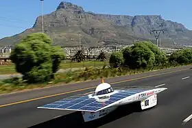 Ainda que a fotovoltaica ainda não se utiliza de forma generalizada para proporcionar tracção no transporte, está-se a utilizar cada vez em maior medida para proporcionar energia auxiliar em barcos e automóveis. Alguns veículos estão equipados com ar acondicionado alimentado mediante painéis fotovoltaicos para limitar a temperatura interior nos dias de calor, enquanto outros protótipos híbridos utilizam-nos para recarregar as suas baterias sem necessidade de ligar à rede elétrica.[93][94][95] Demonstrou-se sobeiramente a possibilidade prática de desenhar e fabricar veículos propulsionados mediante energia solar, bem como barcos e aviões, sendo considerado o transporte rodado o mais viável para a fotovoltaica.[96][97][98][99]
