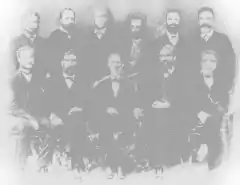 Sentados, na mesma ordem: Manuel de Queirós Matoso Ribeiro, José Ribeiro de Castro Sobrinho, Julião Ribeiro de Castro, João Caetano Carneiro da Silva e Inácio Francisco Silveira da Mota.