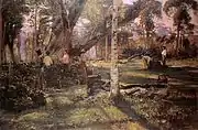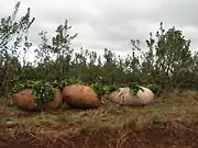 munido de dentes, que rola sobre a erva, movido por tração animal.
