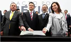 Como primeira medida de governo, Peña Nieto assinou o acordo "Pacto pelo México", firmado entre a Presidência da República e os três mais expressivos partidos políticos do país, a saber: PRI, PAN e PRD.[33] As negociações para conclusão do pacto tiveram início em outubro de 2012 - poucos meses após a eleição de Peña Nieto - lideradas pela equipe de transição presidencial e setores representativos dos partidos. Com a conclusão do acordo em novembro de 2012, a cerimônia de assinatura se deu em 2 de dezembro no Castelo de Chapultepec.[34]