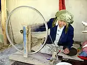 Assim, os movimentos de enrolar o fio de seda seguem padrões contínuos, cíclicos, executados em velocidade constante com o toque leve adotado ao extrair o fio de seda do casulo.
