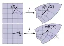Então o par de funções u, v satisfaz as equações de Cauchy-Riemann se, e somente se a matriz 2 × 2 Df comuta com J (Kobayashi & Nomizu 1969, Proposition IX.2.2)