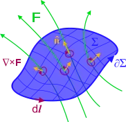 Pelo teorema de Stokes podemos reescrever as integrais de linha dos campos ao redor da curva de controle fechada ∂Σ para uma integral da "circulação dos campos" (ou seja, seus rotacionais) sobre uma superfície que ela delimita, ou seja,