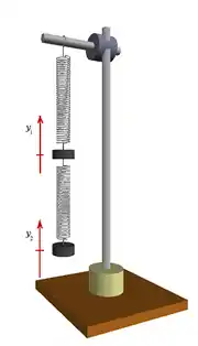 Um exemplo é o sistema da figura ao lado, com duas molas de constantes elásticas e , em que foram pendurados dois pequenos cilindros de massas e