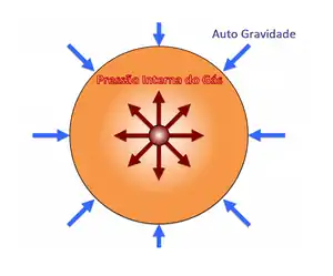 A queda de matéria em direção ao centro é então interrompida quando se iniciam as reações de fusão nuclear no centro da protoestrela. Tais reações produzem um radiação que causa um gradiente de pressão entre camadas da atmosfera. Esse gradiente sempre aponta para longe do centro, opondo-se a força gravitacional e impedindo o colapso do objeto. Diz-se a partir desse momento que foi atingido o equilíbrio hidrostático e a protoestrela passa a ser uma estrela de tamanho bem definido, já que o objeto não mais se contrai.[3]