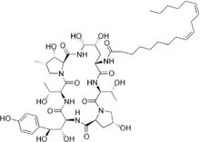 As equinocandinas são uma classe de drogas antifúngicas que inibem a síntese de β-glucano na parede celular do fungo por meio da inibição não competitiva da enzima 1,3-beta-glucano sintase.[1][2] Sendo chamadas, consequentemente, da "penicilina dos antifúngicos"[3] à que o mecanismo de ação da penicilina em bactérias é semelhante. β-glucanos são polímeros de carboidratos que são ligados a outros componentes da parede celular (o equivalente bacteriano é o peptidoglicano). Caspofungina, micafungina e anidulafungina são derivados semissintéticos da equinocandina com uso clínico devido à sua solubilidade, espectro antifúngico e propriedades farmacocinéticas.[4]