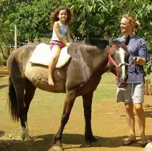 O cavalo é usado principalmente como instrumento cinesioterapêutico, ou estimulatório sensorial. Fonte ANDE-BRASIL 2009.
