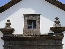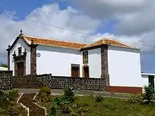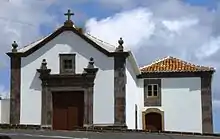 A fachada é emoldurada por cunhais e por um soco saliente com o remate superior moldurado. O portal apresenta duplo lintel e cornija saliente encimada por um óculo quadrado. É ladeado por pilastras cujas bases e plintos se prolongam em relevo sobre o soco e cujos capitéis são relevados sobre a cornija do portal. Sobre estes capitéis salientam-se, em relevo, dois capitéis maiores que suportam pináculos embebidos na parede. A moldura do óculo está ligada à cornija do portal. O lintel é rematado superiormente por um rebordo saliente, onde se lê a inscrição "AD 1733". A fachada é rematada por uma cornija que acompanha o remate das duas águas do telhado. No topo da cumeeira ergue-se uma cruz em pedra sobre base do mesmo material.