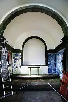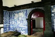 Em seu interior destacam-se uma valiosa colecção de azulejos policromáticos em tons de azul e branco e a cantaria de basalto.[1]