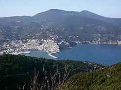 ![]() Vista da cidade de Escópelos, a maior da ilha | |