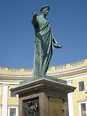 A denominação escadaria “Richelieu” se deve ao fato de uma estátua de Armand Emmanuel Sophie Septemanie du Plessis (Duque de Richelieu) existir no alto da escadaria. Ele foi o primeiro prefeito de Odessa e veste aí uma toga romana. Foi concebida pelo escultor russo Ivan Petrovitch Martos e fundida em bronze por Yefimov, tendo sido inaugurada em 1826, como primeiro monumento erigido na cidade.