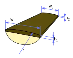 | 3 | Cônico | O braço possui um raio variável, geralmente em progressão linear de para . Às vezes também é chamado de raio composto.[4] O capotraste e a ponte são curvos, mas o raio do capotraste é menor que o da ponte. | |