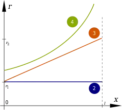 Dependendo dos valores de raio r e sua passagem ao longo do comprimento do braço, todos os escalas geralmente se encaixam em uma das quatro categorias seguintes: