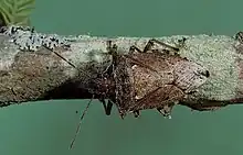 Insetos incluem Neuroptera (família Chrysopidae ), Hemiptera predador (família Pentatomidae ), Diptera (moscas parasitas da família Tachinidae ), besouros predadores (família Coccinelidae, Cicinilidae, Staphylinidae e Carabidae ), bem como himenópteros (vespas e formigas) predadores e parasitas.[24]
