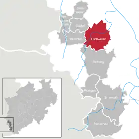 | Localização de Eschweiler no distrito de Distrito da Aachen | |
