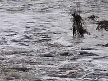 O escoamento urbano também aumenta as temperaturas nos córregos, prejudicando os peixes e outros organismos. (Uma descarga repentina de escoamento de uma tempestade pode causar um choque de água quente capaz de matar peixes. ) Além disso, o sal de estrada usado para derreter a neve em calçadas e estradas em climas frios pode contaminar córregos e aquíferos subterrâneos.[15]