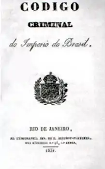 Inserida nos ideais iluministas de liberdade, ocorre, em 1822, a Proclamação da Independência do Brasil. Assim, dois sentimentos surgiam na sociedade: a necessidade de existir uma legislação própria, buscando apagar tudo o que remetia ao antigo domínio colonial, e outro ligado ao liberalismo e novas doutrinas do Direito. É nesse contexto que surge o Código Criminal de 1830, carregando consigo, em seu art. 179, ideais frutos da Escola Clássica, como os de justiça, equidade e também, vale ressaltar, que a pena agora se restringiria ao próprio criminoso e não mais atingiria seus familiares.[31]