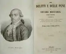 Cesare Beccaria foi [9] pioneiro na construção das teorias que serviram de base para o estabelecimento da nova doutrina que se solidificou como a Escola Clássica. O autor sofreu uma nítida influência do Iluminismo, que se torna explícita tanto pela defesa de uma humanização das Ciências Penais quanto pelas referências ao contrato social abordadas pelo autor.[10] [11] A caracterização de Beccaria como um representante do período teórico-filosófico se dá principalmente pelos traços utilitaristas presentes em sua obra e pela promoção de um Direito Penal embasado na necessidade social.[12] Desse modo, tendo em vista o posicionamento do autor, é importante destacar que, em relação às teorias de fundamentação da pena, Beccaria se encaixa como um defensor da teoria preventiva, que aponta que a pena deve servir para mostrar ao indivíduo a inviabilidade do crime, isto é, a pena deve ter um fim útil.