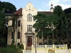 O edifício foi construído pelo arquiteto alemão Augusto Fried e suas características remetem ao período da arquitetura eclética brasileira, que está ligada a ideia funcionalista da arquitetura, pensando em ambientes estéticos, mas confortáveis. Ao mesmo tempo, trata-se de uma fusão de linguagens, já que o estilo mescla a descoberta de novos materiais, atrelados ao surgimento da sociedade industrial no Brasil, com a releitura dos valores arquitetônicos do passado, dessa vez adaptados às necessidades contemporâneas.[17] Ao mesmo tempo, a decoração e a fachada tornam-se elementos essenciais da construção, pois valoriza-se a forma exterior. O ecletismo está relacionado ao abandono do absoluto e a busca por um trabalho múltiplo, que leva em conta todo o panorama brasileiro na área. Principalmente na cidade de São Paulo, em bairros como Jardim América, Jardim Europa e Pacaembu, esse movimento da arquitetura esteve sempre relacionado a residências de famílias de elite da cidade,[18] o que mostra um caráter possivelmente inovador de Fried na construção do edifício em questão. À época, esse estilo de construção interligava-se ao pensamento da classe abastada, que considerava a residência um expositor de status. Além disso, a elite brasileira reproduzia o pensamento da intelectualidade europeia, francesa especialmente, o que foi fundamental para a caracterização de suas moradias. Contudo, é necessário pontuar que a representatividade da arquitetura adotada pela elite não se restringia apenas a essa classe, estendendo-se às classes mais baixas, que também adotaram as fachadas ornamentadas e as decorações incrementadas.