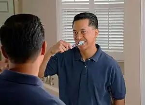 Uma escova de dentes é um instrumento usado para limpar os dentes, consistindo em uma pequena escova em uma alça. Creme dental, geralmente contendo flúor, é comumente adicionado a uma escova de dentes para ajudar na limpeza. Escovas de dente vêm em variedades manuais e elétricas. Embora haja evidências conflitantes sobre qual é mais eficaz, a maioria das evidências aponta para escovas de dentes elétricas com um movimento oscilatório mais eficaz do que as escovas de dentes manuais, com escovas sem um movimento oscilatório equivalente.[8] Uma revisão da Cochrane de 2014 encontrou evidências moderadas de que a escovação elétrica reduz a placa bacteriana e a gengivite mais do que a manual.[9] No geral, as escovas de dentes manuais e elétricas são eficazes, no entanto, e geralmente é recomendado que as pessoas usem a que se sentirem confortáveis, determinem o que é acessível para elas e terão maior probabilidade de escovar regularmente.[10]