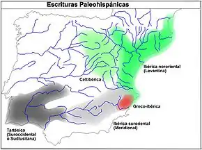 - Este artigo foi inicialmente traduzido, total ou parcialmente, do artigo da Wikipédia em inglês cujo título é «Iberian scripts», especificamente desta versão.