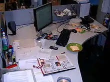 Até o final dos anos 1980, as mesas continuavam sendo um lugar para documentos e máquinas de escrever, mas com a introdução do computador pessoal nas grandes e médias empresas, novos designs de escritório surgiram para atender essas mudanças,[8] levando posteriormente a adaptações nas escrivaninhas domésticas.