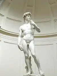 Tudo pareceu culminar no Renascimento, com mestres como Donatello e seu Davi em bronze, a estátua eqüestre do Gattamelata ou suas inúmeras esculturas em mármore, abrindo caminho para a obra maior de Michelangelo, com seu magnífico David em mármore, a Pietá, ou Moisés. Provavelmente o David de Florença seja a escultura mais famosa do mundo desde que foi revelada em 8 de setembro de 1504.[7] É um exemplo do contrapposto, estilo de posicionar figuras humanas.