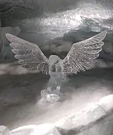 Águia esculpida em gelo, exposta no interior de uma geleira da Suíça.