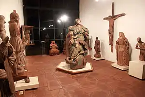 Na época da sua criação o museu contava com apenas três imagens. Em 1993 já tinha 94 peças catalogadas, em sua grande maioria coletadas na região por João Hugo Machado, muitas vezes com o auxílio coercitivo da polícia para conseguir que as famílias as cedessem para o museu, o que invariavelmente faziam contra a sua vontade e não raro protestando com violência.[45] Esse acervo divide-se em dois grupos principais: esculturas de características europeias e outras marcadamente nativas. As primeiras trazem a influência de escultores italianos como Bernini, e espanhóis como Juan Martínez Montañés, Alonso Cano e José de Mora, percebidas em imagens como a de Nossa Senhora da Conceição, a de São Miguel Arcanjo, e a de São José com o Menino. Por outro lado, há algumas peças que apresentam sinais da cultura indígena, em formas marcadas pelo geometrismo característico da cestaria, da cerâmica e da pintura corporal.[46] A maioria delas apresenta mutilações e perda parcial ou total da policromia, em virtude das vicissitudes a que foram submetidas ao longo dos anos.[47]