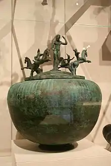 A origem dos etruscos, que chamavam a si mesmos de Rasenna, tem sido objeto de polêmica desde a Antiguidade. Heródoto acreditava que eles eram a descendência de populações vindas da Anatólia antes de 800 a.C., deslocando habitantes anteriores, mas Dionísio de Halicarnasso os tinha como autóctones. A pesquisa moderna também não chegou a um consenso, e os especialistas acabaram considerando esse tópico insolúvel, passando a concentrar os estudos na forma como sua sociedade se organizou. O que se sabe com certeza é que por volta de meados do século VII a.C. suas principais cidades já haviam sido fundadas, iniciando em seguida um período de expansão territorial que acabou por fazê-los dominar uma grande região mais ou menos no centro da Península Itálica, que ia da Venécia e Lombardia até o Lácio e a Campânia. Entretanto, nos séculos seguintes suas conquistas foram ameaçadas e vários povos itálicos conseguiram fazê-los recuar. Enfim, seus derradeiros baluartes foram tomados pelos romanos, que absorveram sua cultura e causaram sua dissolução. Em seu apogeu os etruscos foram o povo mais poderoso da Itália pré-romana e estabeleceram uma próspera civilização, com grande produção agrícola, uma poderosa frota, um comércio florescente que abrangia boa parte do Mediterrâneo, e uma cultura original, cuja arte tinha um papel de destaque e foi de grande influência para a formação inicial da arte da Roma Antiga.[3][4]