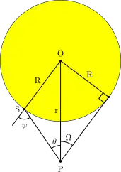 onde Ω é o ângulo do observador para o bordo da estrela. Para θ pequenos, temos: