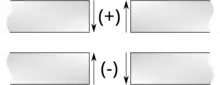 A convenção de sinal usual considera a uma força cortante positiva, se ela for capaz de gerar um rotação no sentido horário.[1]